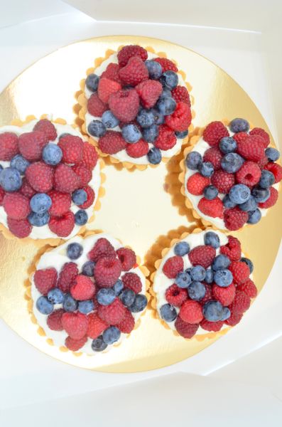 1182 Tarta z kremem waniliowym i musem truskawkowym