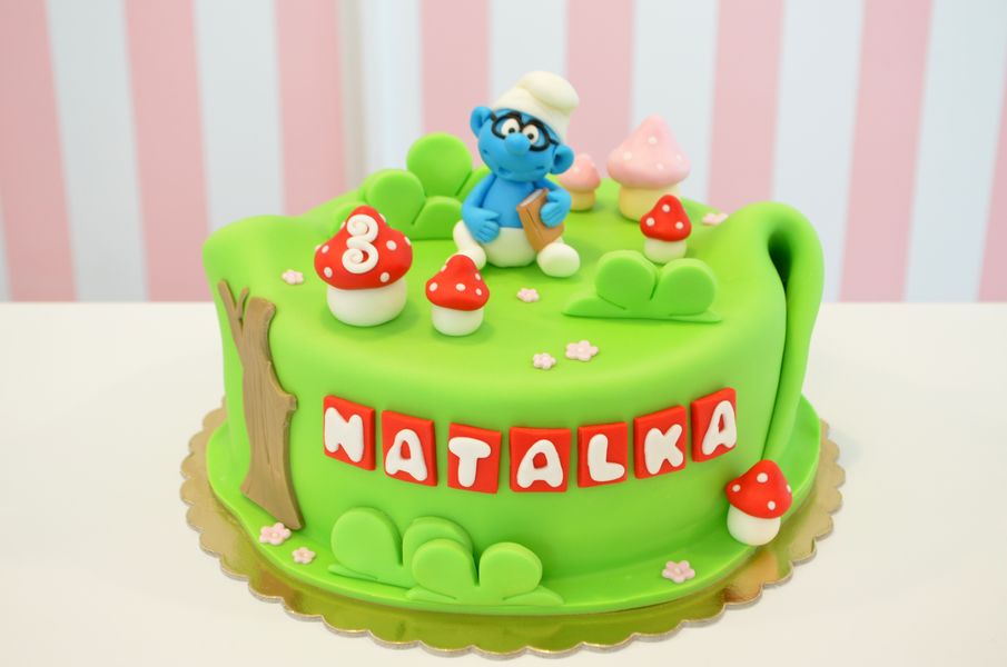 4264 Tort Smerfy Smurfy wydruk las leśny