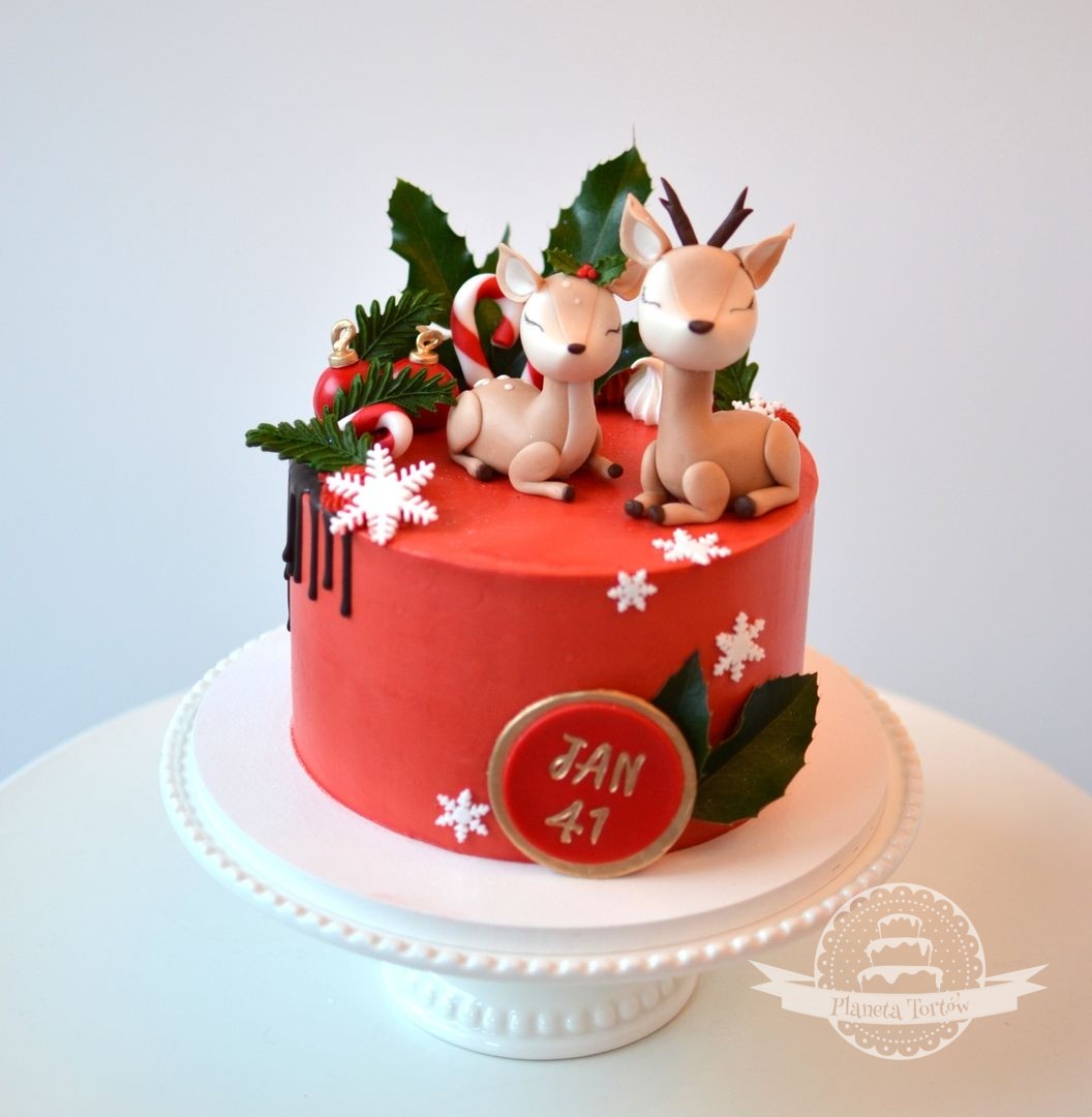 4292 Tort świąteczny Boże Narodzenie Święta czerwony jelonki